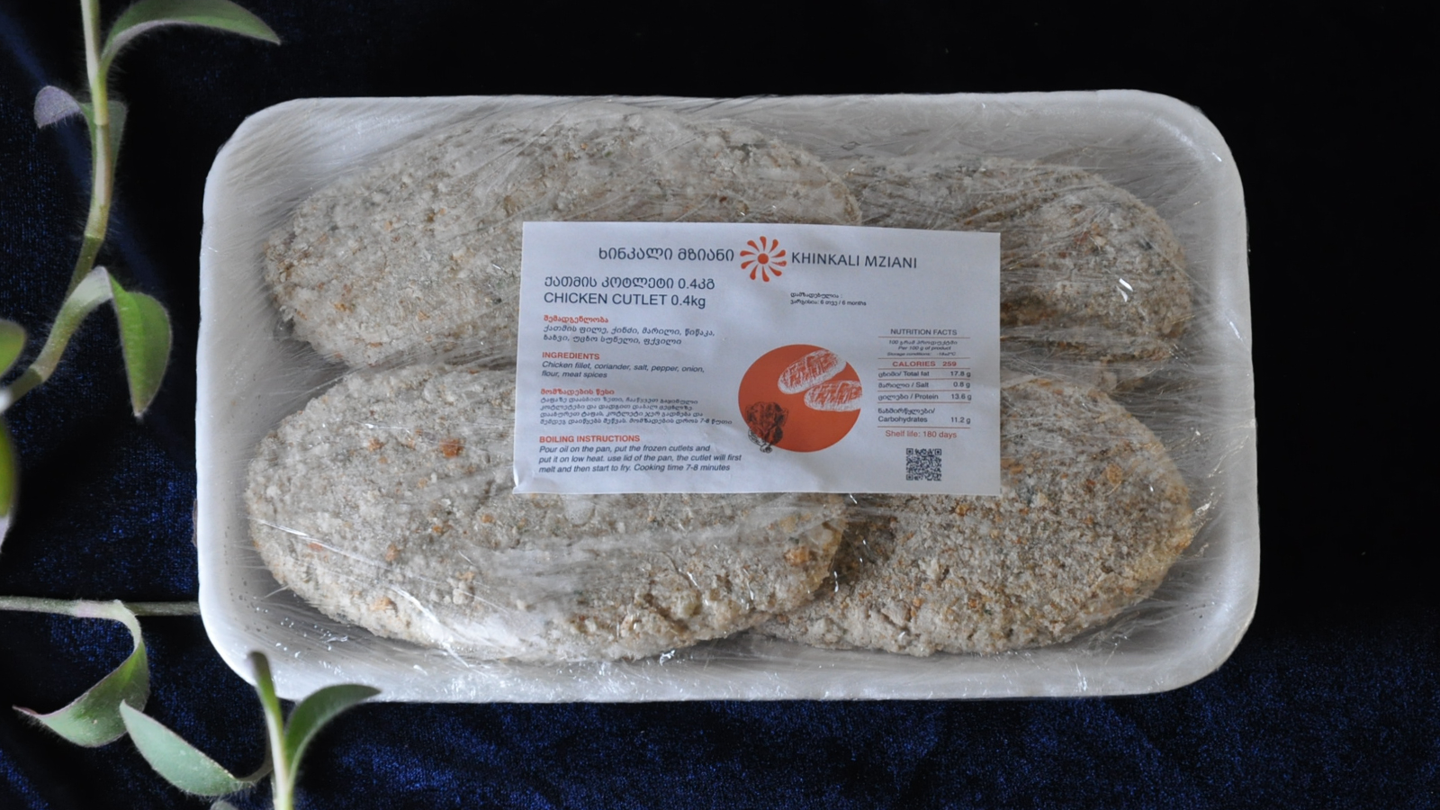 შემადგენლობა: ქათმის ფილე, ქინძი, მარილი, წიწაკა, ხახვი, უცხო სუნელი, საფანელი